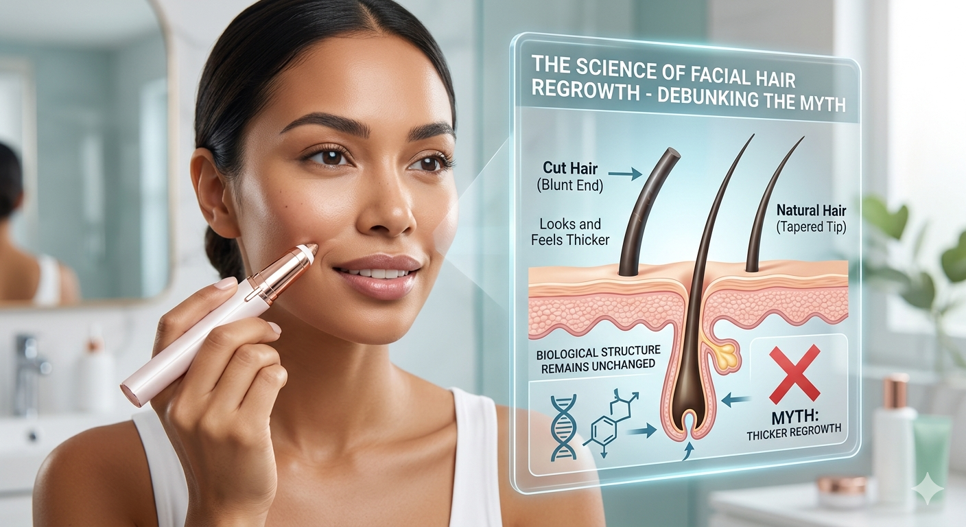 A szőr vastagságát és növekedési ütemét kizárólag genetikai és hormonális tényezők határozzák meg, nem pedig külső eltávolítási módszerek. Minden emberi haj a bőr irharétegében mélyen lévő tüszőből nő. Amikor használja a arcszőrtelenítő , akkor vagy a felszínen vágja le a hajat, vagy húzza ki a gyökeréből. Ezen műveletek egyike sem kommunikál a tüsző izzójával, hogy vastagabb szálat hozzon létre. A tüsző előre meghatározott ciklust követ – anagén (növekedés), katagén (átmenet) és telogén (pihenés) –, amelyet belső jelek szabályoznak, mint pl. androgének és a vérellátás.